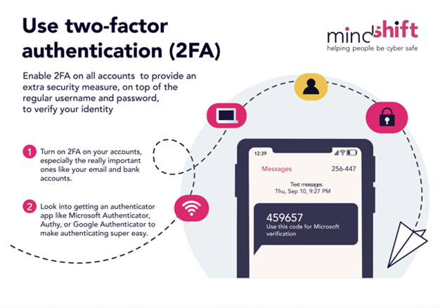 Mindshift encourages everyone to switch on 2FA to provide another layer of protection to help your accounts and passwords stay secure.